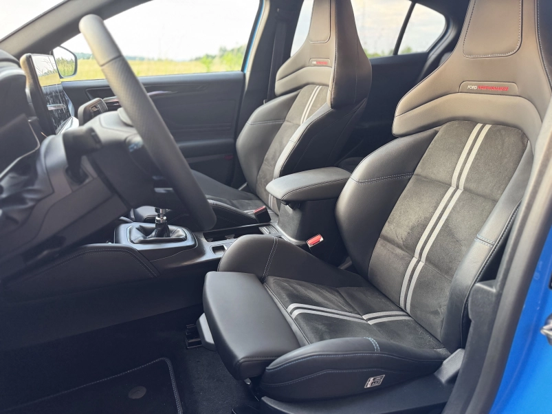 - Zaskakująca gościnność dla dwumetrowca – to mój osobisty, największy szok. Spodziewałem się tortur, a dostałem świetnie dopasowany kokpit. Fotele Recaro, mimo sportowego charakteru, okazały się wygodne na dłuższych trasach, a ilość miejsca na nogi i nad głową pozwoliła mi zapomnieć o moim wzroście. Brawo, Ford!