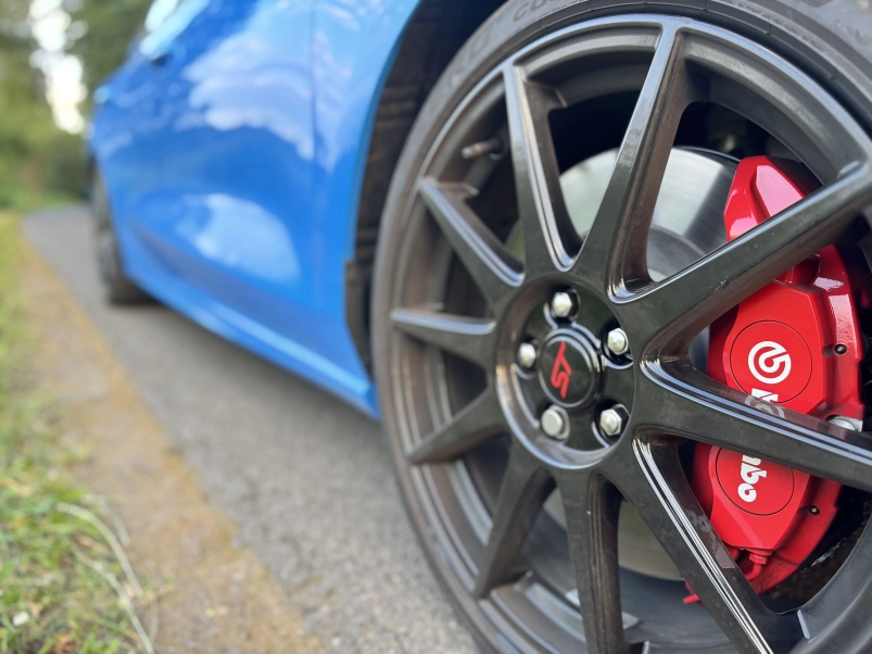 Po trzecie: Hamulce. Moc to jedno, ale umiejętność jej wytracenia jest równie ważna. Za to odpowiadają potężne, czterotłoczkowe hamulce Brembo z przodu. One nie tylko zatrzymują auto w miejscu z niewiarygodną siłą. One robią to raz za razem bez najmniejszych oznak zmęczenia czy utraty skuteczności. Daje to ogromną pewność siebie i pozwala opóźniać hamowanie do granic możliwości.