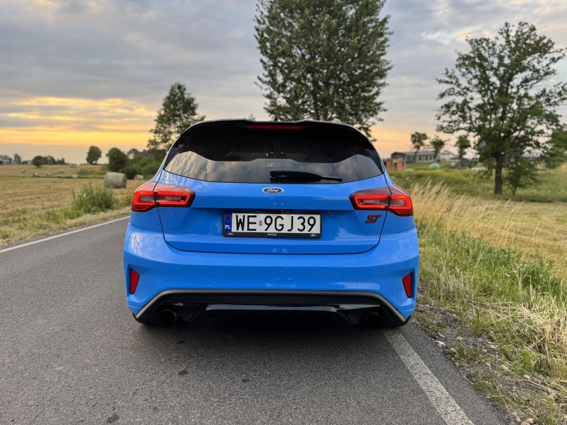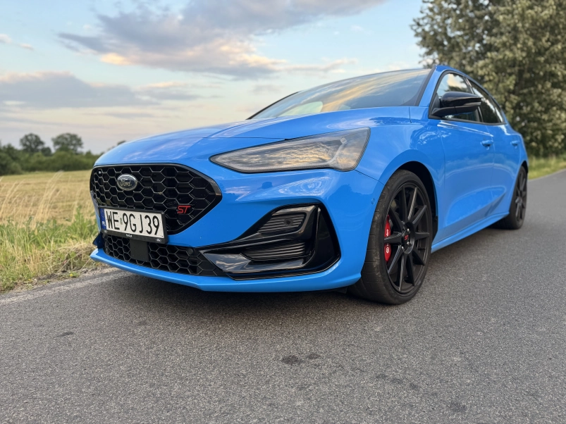 Są kluczyki i są kluczyki. Te, które wylądowały na moim biurku, należały do drugiej kategorii. Nie miały na sobie blichtru luksusowej limuzyny, ale niosły ze sobą ciężar legendy i obietnicę czegoś absolutnie wyjątkowego. Na parkingu czekał bowiem nie “jakiś tam” Ford tylko Ford Focus ST Edition w hipnotyzującym, głębokim kolorze Azura Blue. To nie jest krzykliwa zieleń czy czerwień. To barwa dla koneserów. Sygnał dla wtajemniczonych, że mają do czynienia z czymś więcej niż tylko szybkim kompaktem.