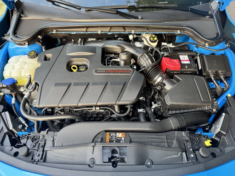 Naciskam START. Do życia budzi się znajomy, 2,3-litrowy silnik EcoBoost, ale świadomość, co jeszcze kryje się pod tą niebieską karoserią, potęguje doznania. Moc 280 KM i potężny moment obrotowy 420 Nm, dostępny już od 3000 obr./min, to dopiero początek opowieści. Dzięki turbosprężarce typu twin-scroll o niskiej bezwładności, samochód rwie do przodu bez chwili zawahania, pozwalając na dynamiczne przyspieszenia nawet bez nerwowej redukcji biegu. Sprint do setki w 5,7 sekundy czuć w każdym centymetrze ciała wciśniętego w fotel.